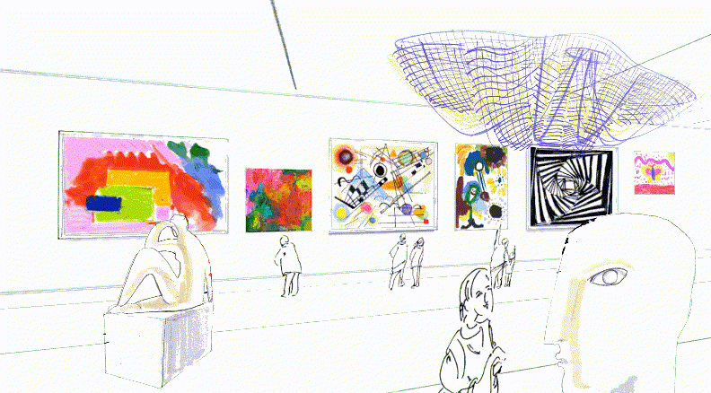I was assigned to complete the MoMA portion of the software. With a given design sketch, I was able to come up with the game mechanics, transitions and demo assets. During the development phase, I suggested having stop-motion like drawing to enhance the liveliness of the experience, I made the assets and it was approved to be in the design.